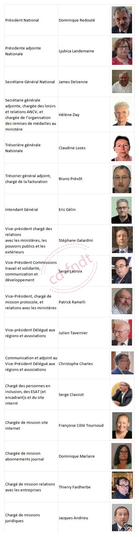 Bourgogne-Franche-Comté Président FNDT de 2016 à 2022 Comité Directeur 01-Président Honoraire Jacques ANDRIEU 17 rue du Vert Coteau 70000 Navenne Tél. fixe : +33384919238 Tél. portable : +33683590505